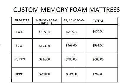 Use standard foam to custom cut mattress tops and eggshells from twin-sized beds up to king-sized beds. At our store, you'll even find what you need to make custom cut dog beds. With widths ranging from 1" to 6", upgrade to 3 lb. memory foam with cooling gel for additional comfort.